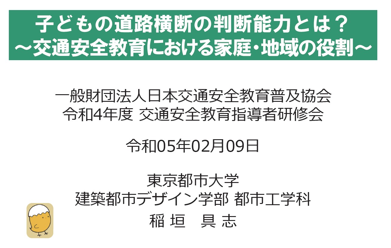 本研修会は、交通安全教育に携わる行政担当者、交通指導員等の方々を対象に、交通安全教育の今日的課題にせまる基礎理論、具体的な指導方法の講義、及び判別討議を行い、指導者としての資質の向上と実践活動の促進を図る目的で開催しています。
