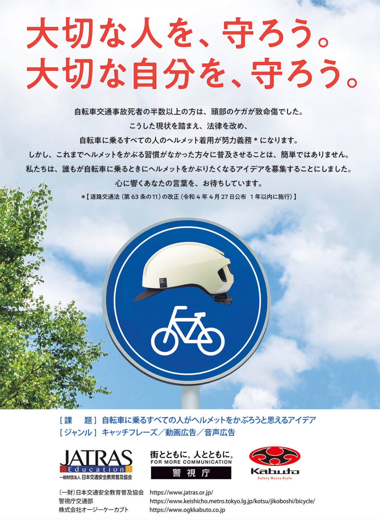 【課題】:自転車に乗るすべての人がヘルメットをかぶろうと思えるキャッチフレーズ